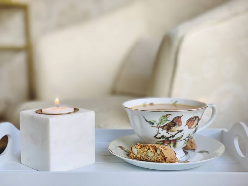Feel welcome in a friendly, calm, quiet atmosphere where you can soak in the relaxing music, cozy decorated neutral tones and ambient candles.